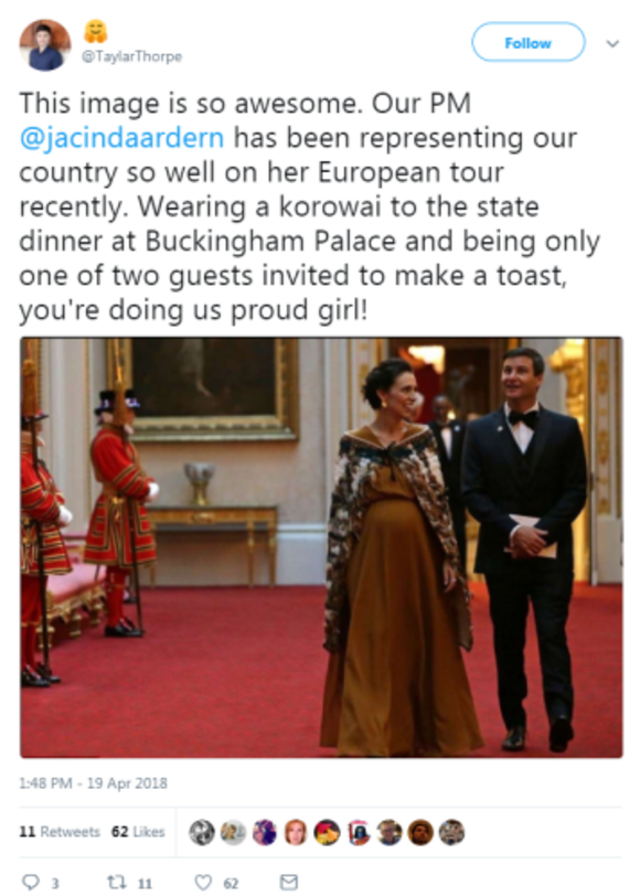 New zealand prime minister jacinda ardern has caused a stir with a striking image of her walking the halls of buckingham palace swathed in a traditional māori cloak during this week's commonwealth.